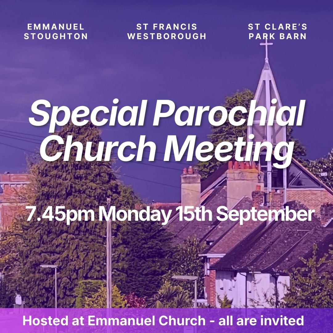 A special church meeting was held on Monday 15th September, regarding the merger of Emmanuel Stoughton Parish with St Francis and St Clare’s Westborough Parish. We are delighted to be one combined parish of three churches.